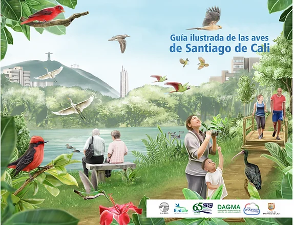 Puedes ver aquí documento “Guía ilustrada de las aves de Santiago de Cali”, se comparte solo con el fin de tener una referencia de las especies de aves que puedes encontrar en esta zona de uno de los países mas biodiversos del mundo.